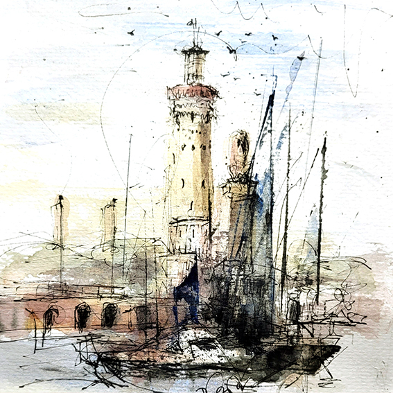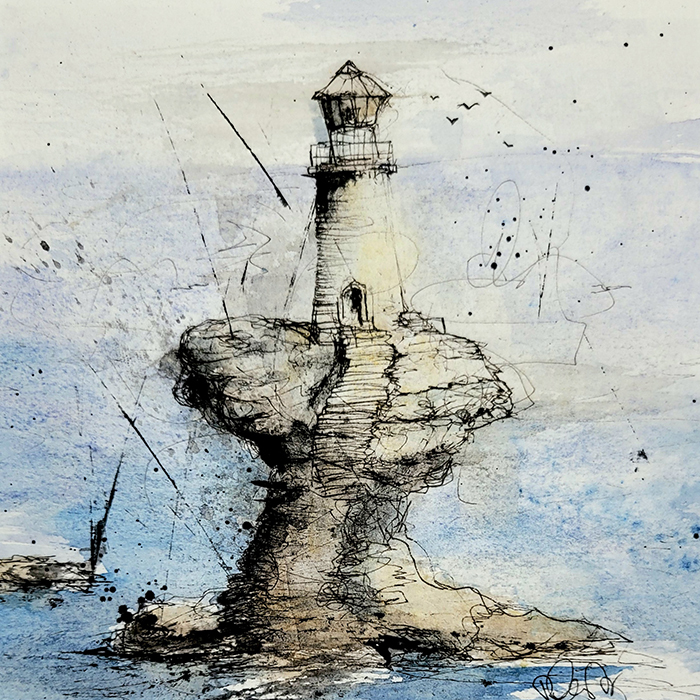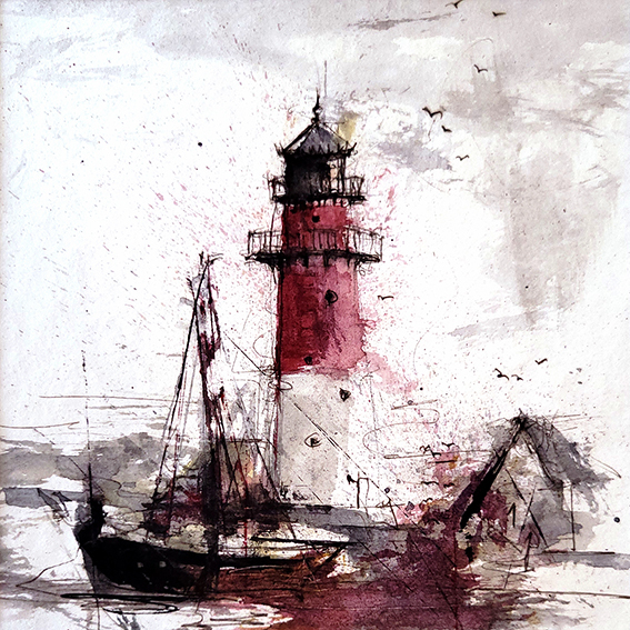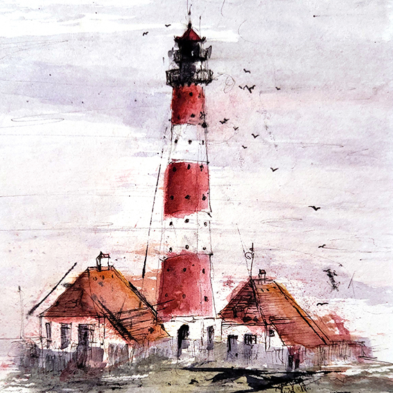 Leuchttürme Aquarelle 20x20cm 80€